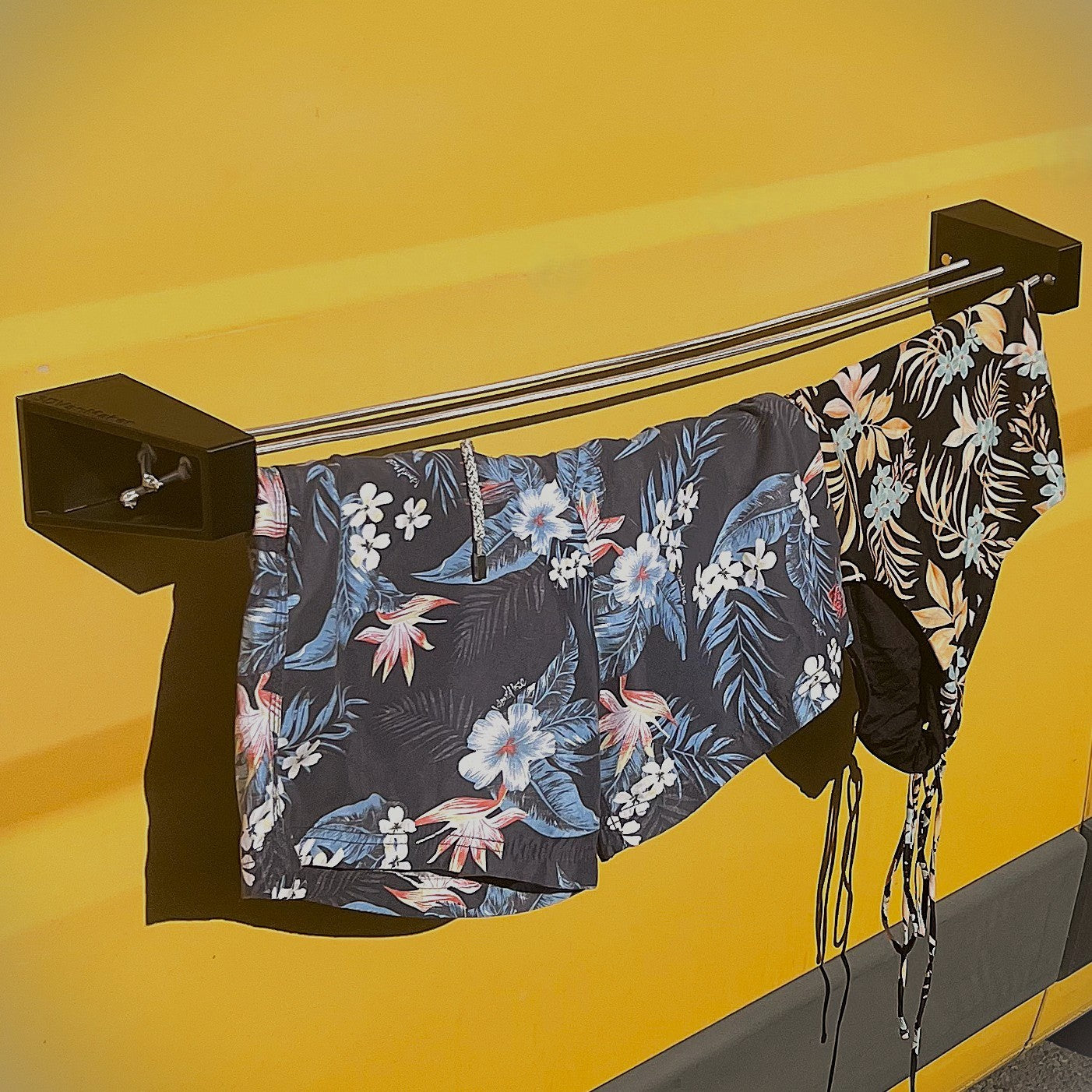 Étendoir aimanté de 80cm de largeur avec 3 rangées pour van / camping-car. Séchez facilement tous vos vêtements avec cet étendoir pratique et compact. Cet étendoir est destiné aux vêtements légers tels que maillots de bain, t-shirt, shorts etc, merci de privilégier le support 4kg ou 6kg pour sécher des pièces lourdes telles qu'une combinaison.