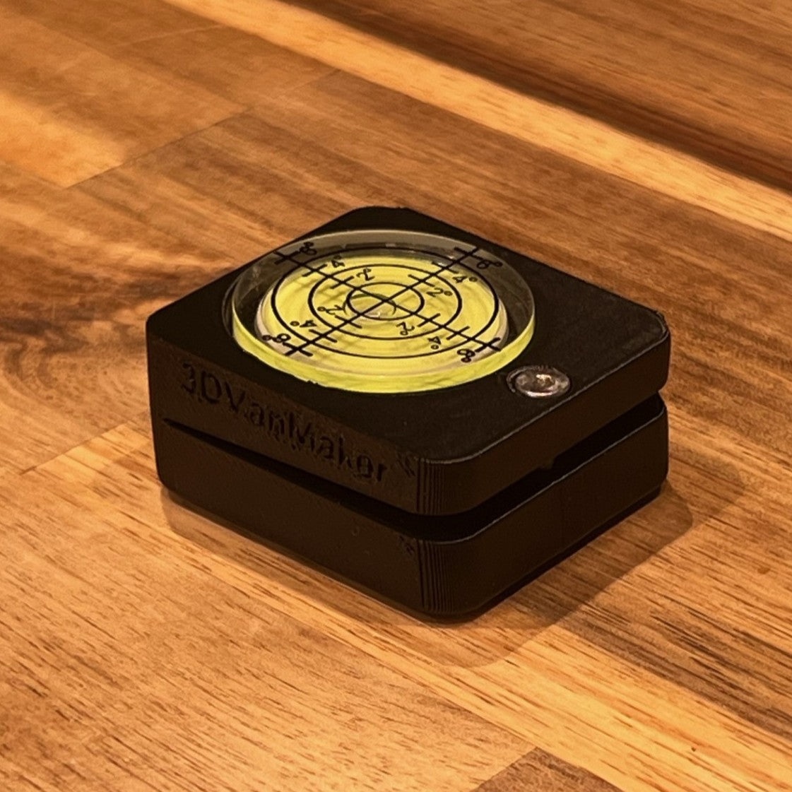 Niveau à bulle ajustable à coller à un endroit plat sur votre tableau de bord. Vous pourrez ajuster finement l'angle d’avant en arrière de + ou - 5 degrés pour prendre en compte le chargement de votre véhicule et l’inclinaison du spot choisi sur votre tableau de bord. Il se fixe à l’aide d’un adhésif double face fourni.